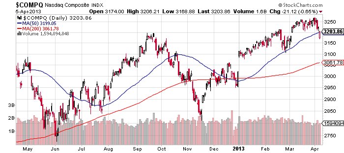 It is useful to look at charts for the Dow, the S&P 500, and the NASDAQ. Look for confirmation between all of them to confirm a move.