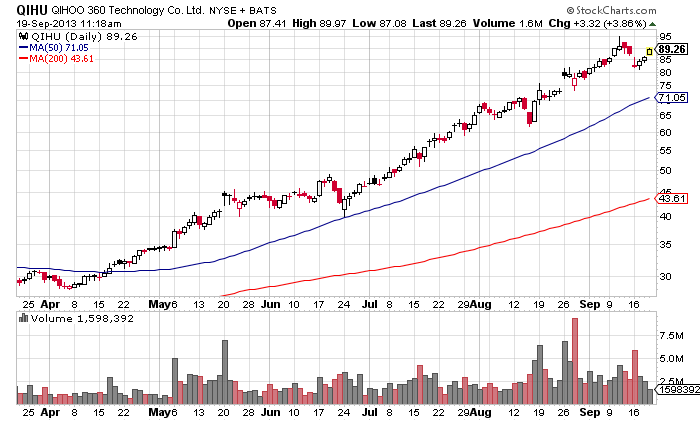 Our Qihoo 360 (QIHU) stock purchase back on May 6th has done fantastically well.  We have almost tripled our money.  Click this link to review our Qihoo stock trade.