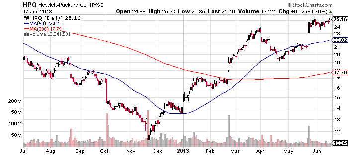 I wanted to followup on my Hewlett-Packard trade placed back in November 2012, when I bought shares at 11.52. Here is a chart through today: