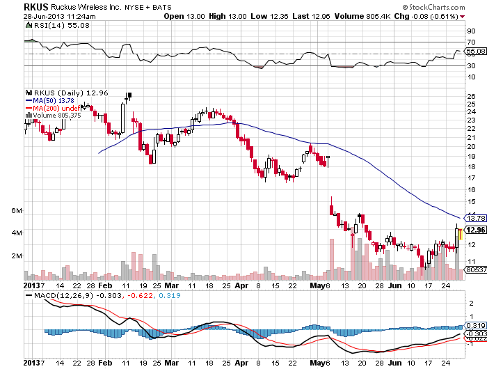 I thought I would follow up on a trade that I placed in February 2013. I bought shares of Ruckus Wireless (RKUS) on February 13, 2013 and was stopped out the following day on February 14, 2013.